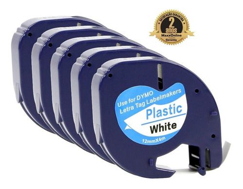 Kit com 5 Fitas Rotulador Dymo Letratag Plastica 91201