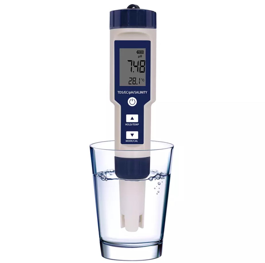Medidor Azul Marinho 5 Em 1 Salinidade PH Temperatura Condutividade Portátil M4258
